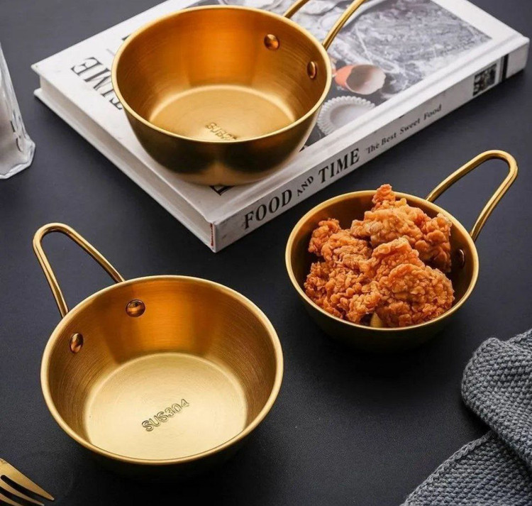 کاسه استیل طلایی تک دسته سایز بزرگ
