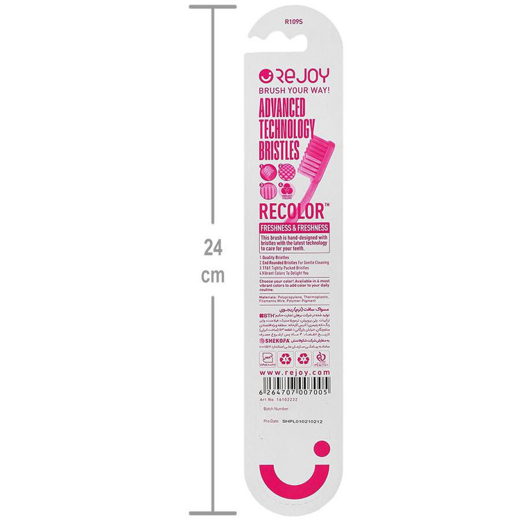 با مسواک ریکالر ریجوی به دنیایی قدم خواهید گذاشت که در آن پوسیدگی دندانی و میکروب جایی ندارد. الیاف مسواک ریکالر غیر نوک تیز و فشرده است و در حین پاک کنندگی به لثه و دندان شما آسیب نمیزند.