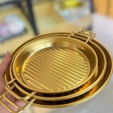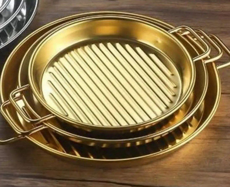 تابه گریل گرد دو دسته استیل طلایی سایز بزرگ